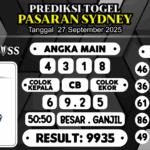Prediksi Boss Togel Sidney Sabtu 27 September 2025