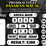 Prediksi Boss Togel Macau Senin 29 September 2025