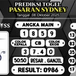 Prediksi Boss Togel Sidney Rabu 08 Oktober 2025